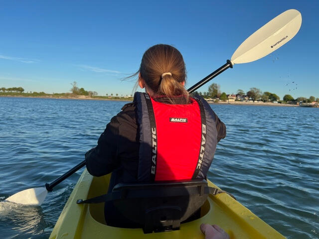 Put the paddle in the water, turn your body and use the twisting force to move the paddle through the water. The paddle should be lifted out of the water when the hand closest to the surface of the water is at hip level. The hand that is placed higher up should always be the one pushing and the hand below should be the one pulling.It is important to bear in mind that the Öresund is a current of water.